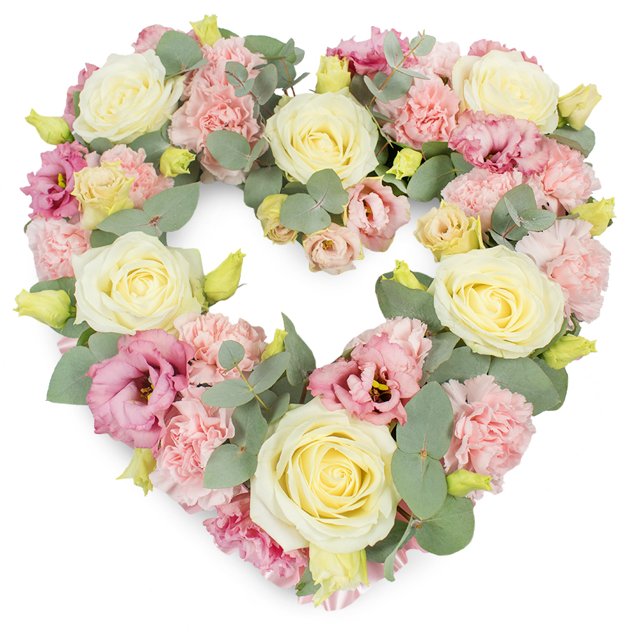 Convey your deepest emotions with our Heartfelt Open Heart Tribute Bouquet. This beautiful arrangement features a graceful blend of white roses, pink carnations, pink lisianthus, and soothing eucalyptus leaves. Each flower is carefully selected by hand to ensure unparalleled freshness and elegance.